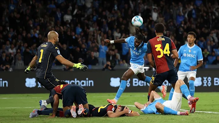 | Napoli, 5 ottobre 2025 (Domenica h. 18,00 Sky) 2-1 al Maradona. Napoli, che brividi! Poi Anguissa e Hojlund ribaltano  il Genoa. Conte torna primo. Rossoblu' avanti con un tacco di Ekhator, poi si  svegliano i campioni d''talia. Brutte notizie dall'infermeria per gli infortuni  di Lobotka e Politano, usciti per guai muscolari: l''zzurro a rischio per la  Nazionale.  Due facce dello stesso Napoli. Impacciato, lento, molle nel primo tempo. Feroce, convinto, gladiatore nella ripresa, quando l'inserimento di Kevin De Bruyne accende la luce offensiva e l'assalto all'area del Genoa diventa una strada in discesa. La rimonta parte da li', perche' per 50' il Genoa controlla, riparte, spaventa e passa pure in vantaggio poco dopo la mezz'ora del primo tempo con una prodezza di tacco di Ekhator. Poi il Napoli si riassesta, ritorno al 4-1-4-1 e con Anguissa e Hojlund ribalta il Grifone e si riprende la testa della classifica, in coabitazione con la Roma in attesa del Milan. Tre punti d'oro prima della sosta: c'e' piu' gusto a lavorare quando si guarda tutti dall'alto. Illusione rossobu’ - Eppure i primi dieci minuti sembravano il preludio a una giornata tranquilla. Prima Hojlund aveva sfiorato il gol (7') con una rocambolesca carambola sul petto dopo il rinvio di Marcandalli, con la palla che aveva scavalcato Leali ma e' finito a lato. Poi e' stato Politano (11') a sparare alto da buona posizione dopo bella sgasata a sinistra. Ma da quel momento in avanti, il Napoli e' evaporato lentamente, lasciando campo e iniziative al Genoa, che ha trovato poi il vantaggio con una splendida giocata a destra di Norton-Cuffy: Olivera aggirato, cross basso e colpo di tacco vincente di Ekhator.